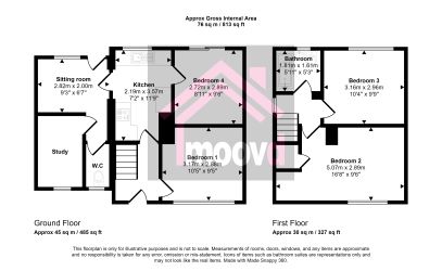 The well planned out ground floor briefly comprises: Entrance hall with staircase to first floor, a generous sized bedroom one, to the front, communal fitted kitchen and bedroom four, to rear with sliding patio door to rear garden, a sitting room, can be found to the side of the kitchen, with cloaks W.C and large storage cupboard. To first floor are bedrooms two and three, both of double size and a white family bathroom W.C. Externally is a front garden, with double length driveway and enclosed rear with patio and large shed.