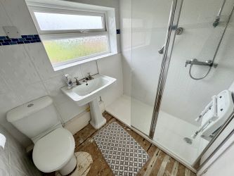 Family Shower Room - A white suite comprising: walk in shower with mains shower over, pedestal hand basin and low level W.C, cladding and tiling to walls, UPVc double glazed frosted window to rear aspect and single radiator.