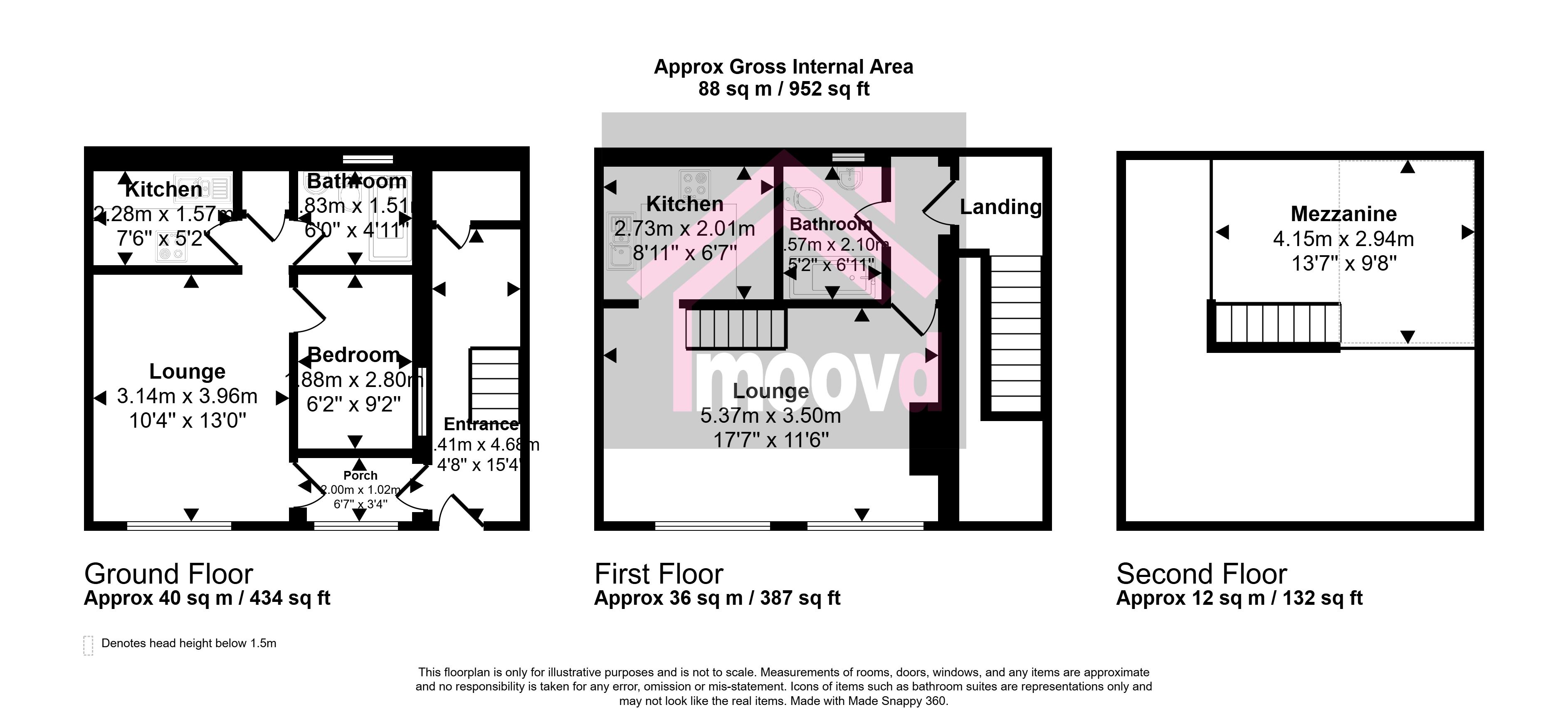 Lounge - 5.37 x 3.50 (17'7" x 11'5") - Two windows to front, electric radiators, open staircase to mezzanine level.