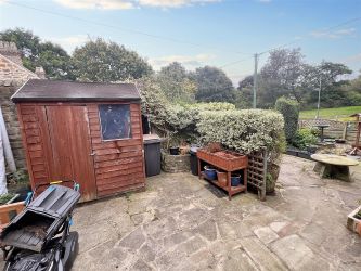 Externally - Low maintenance, paved front and side gardens, with garden shed. raised borders, gravelled areas and gated access.