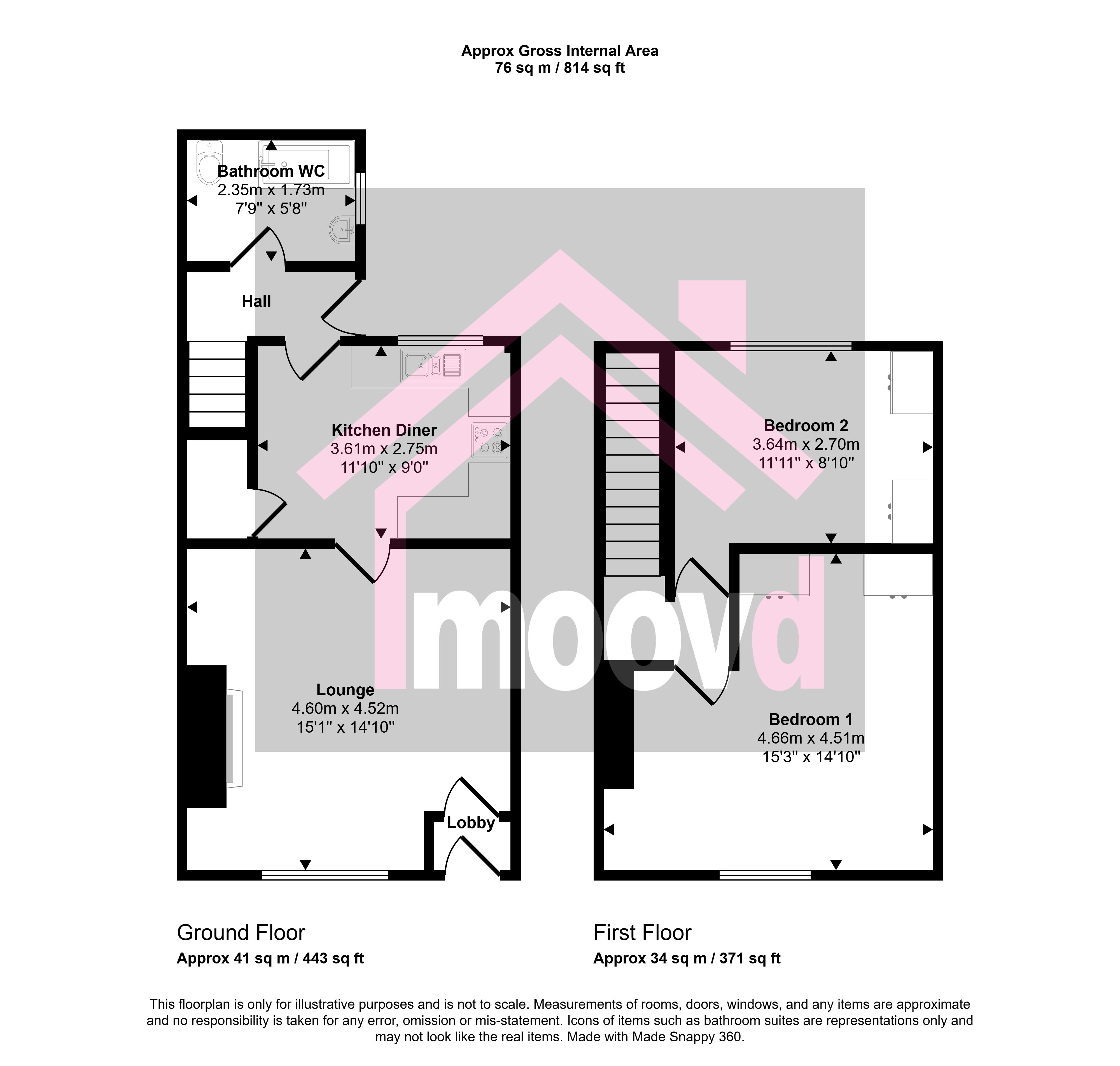 The ground floor layout briefly comprises entrance hallway, into large lounge with feature fireplace, onwards to the rear of the property with kitchen diner, rear lobby with staircase to first floor and downstairs family bathroom. To first floor are two well proportioned bedrooms, both benefiting from fitted storage. Externally is a well presented rear yard with gated access.